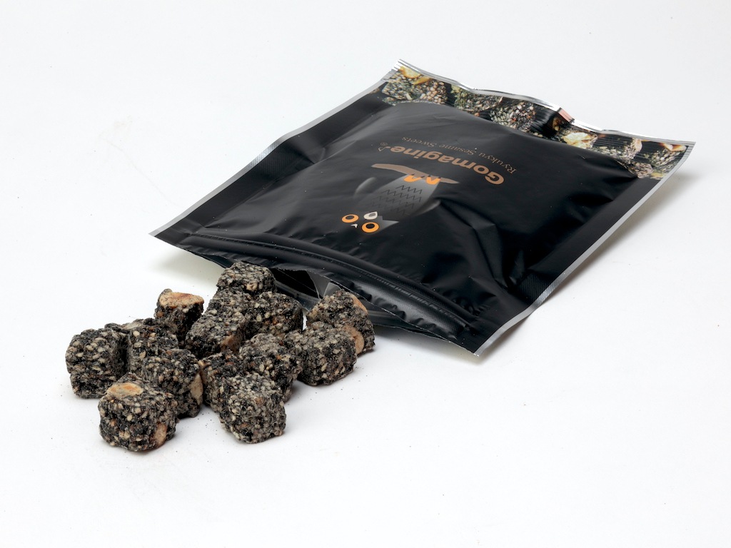 サイコロ状にギュッと詰まった、たっぷりの黒ごまとヘーゼルナッツの香ばしい風味。ココナッツミルクと黒糖のほどよい甘さ。昔ながらの地釜炊製法で、熟練職人が繊細に味付けし、丹念に仕上げています。