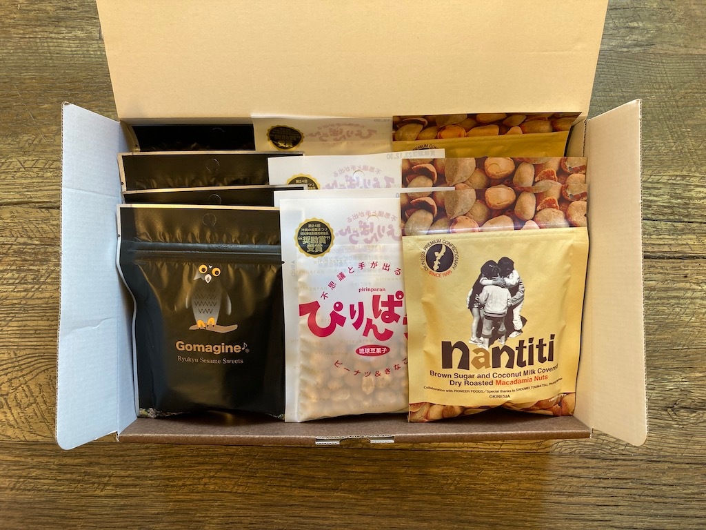 素朴な味わいを大切に、栄養にもこだわった3種類の豆・ナッツ菓子の詰め合わせです。原材料の加工黒糖、粗糖、コーラルカルシウムはすべて沖縄産を使用しています。
