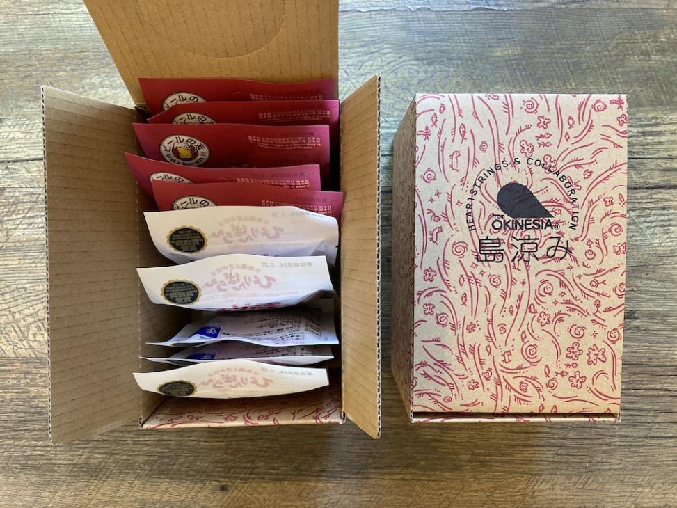 飽きのこない素朴な味わいが人気のぴりんぱらんきなこ風味。にんにく風味は香ばしいハーブにんにくの風味に、島唐辛子がピリッと効いて、クセになる一品です。どちらもサンゴカルシウム入り。紅白のなんともおめでたいパッケージ、お祝いの贈り物にいかがですか♪