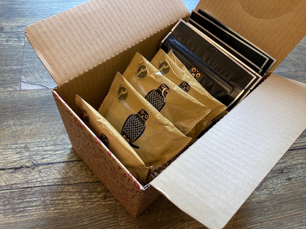 黒ごまとマカダミアナッツの深い味わい、ごまふくろう。ヘーゼルナッツ の香ばしさにココナッツミルクのアクセントが新鮮な、ごまじん。ごまふくろうのパッケージや個包装に描かれたフクロウは、リュウキュウアオバズクといって、沖縄県のレッドデータブックで準絶滅危惧種に分類されている希少動物なのです。そしてごまじんはというと、リュウキュウアオバズクの子供。お母さんのごまふくろうが大のビートルズファンで、大好きなあの曲にちなんで名前をつけたそうです。子守唄だったそうな…。